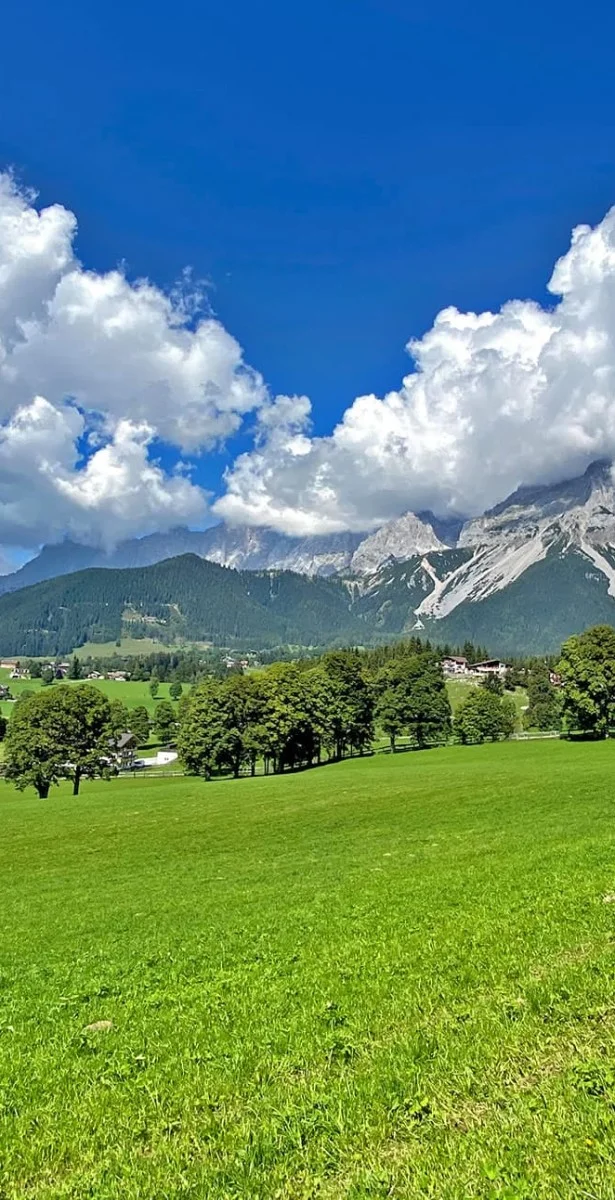 In the valley, we first leisurely follow the Enns cycling path until we reach the Untere Klaus. There, the ascent to the Ramsauer Plateau towards Birnberg begins on an asphalt road. Just before the small village of Birnberg, you turn left onto a meadow path and then continue along a nice forest path in the shade. After a short stretch on the road, you switch back to gravel and continue in the direction of Ramsau am Dachstein.